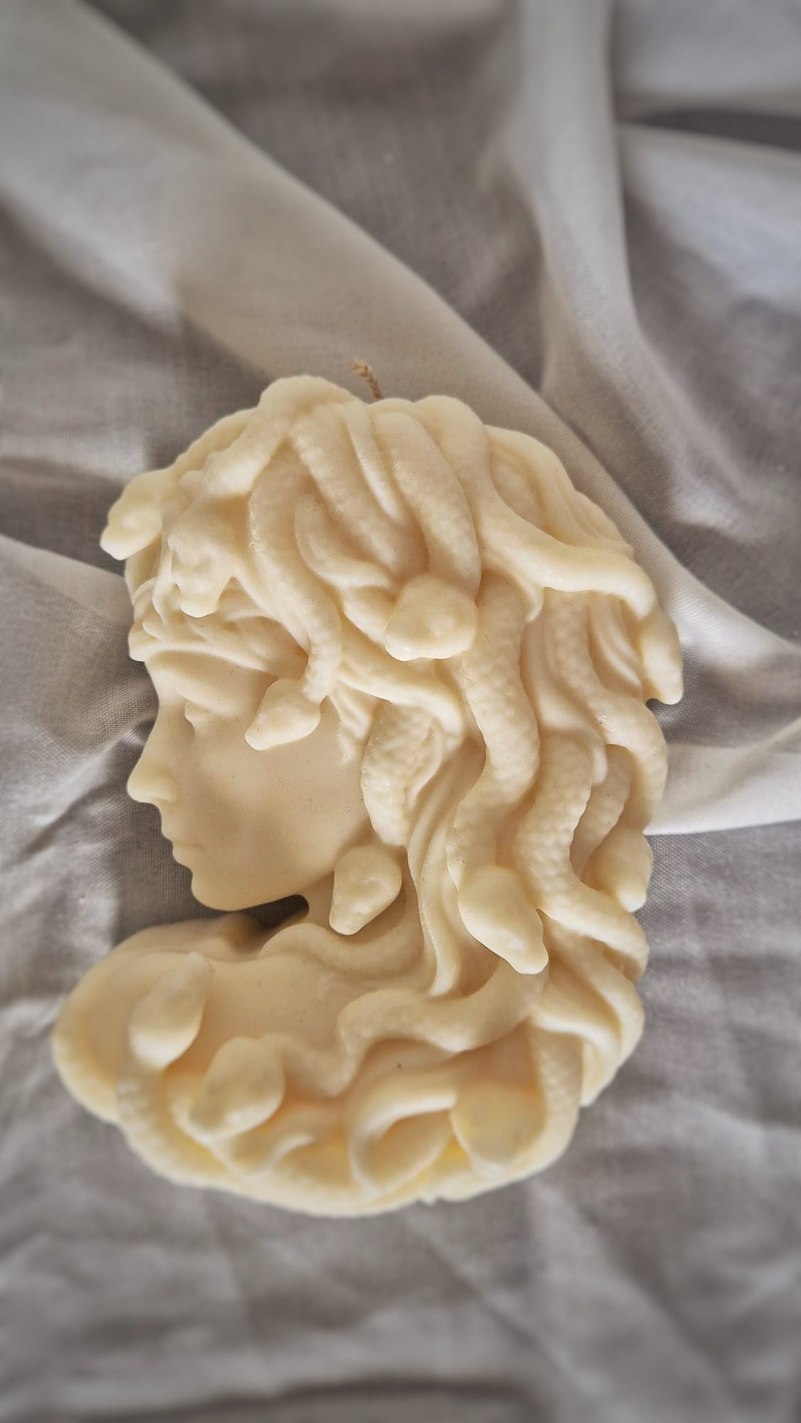 Bougie moulée en cire de soja, conçue comme un objet décoratif à part entière.